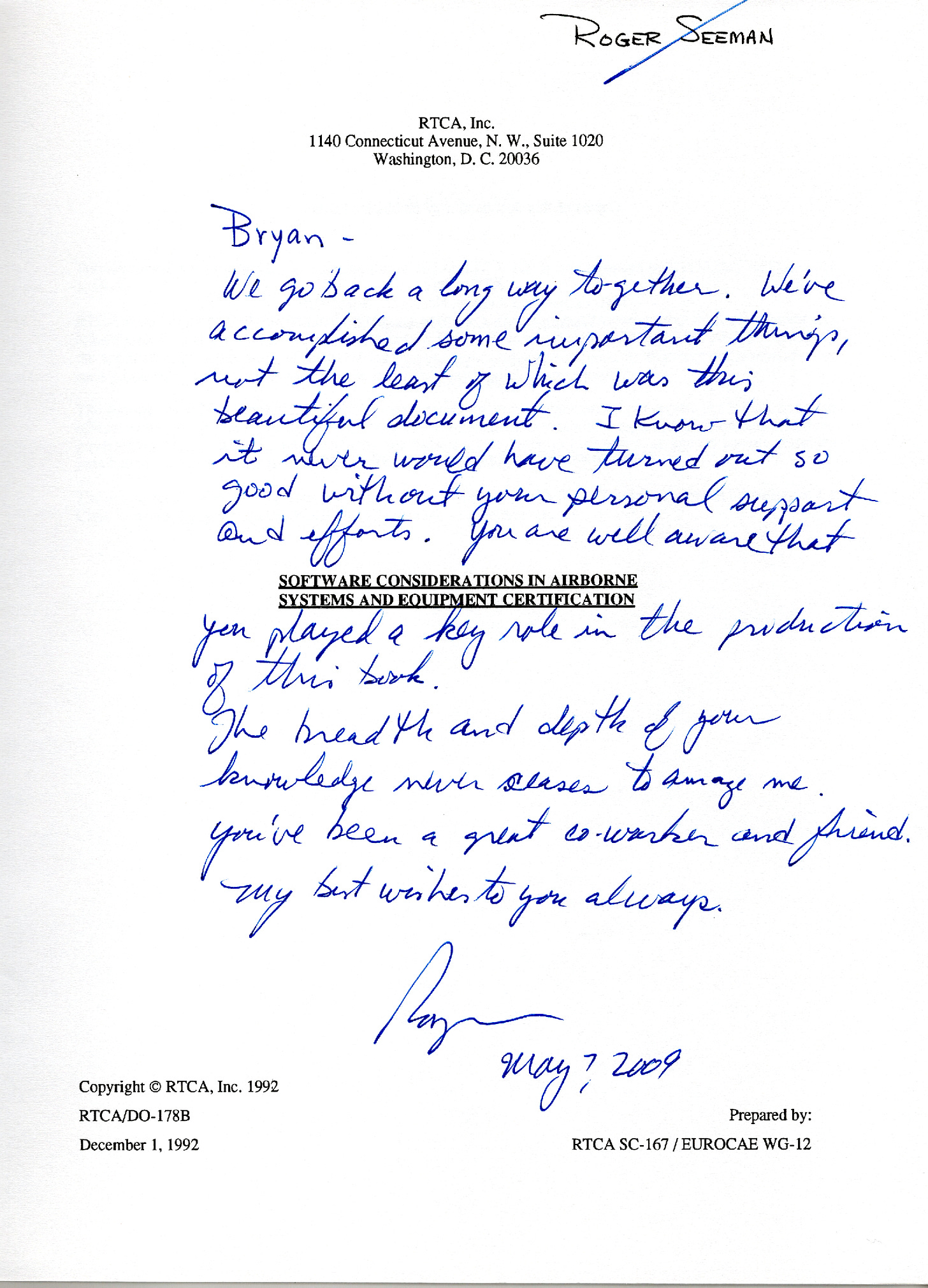 Practices are only effective when used by the right people and the leaders and contributors to DO-178B can remain proud of their contributions to the practice of software engineering in safety-related systems. The above practices are offered in the hope that this evolution can produce a similarly enduring legacy in future work.