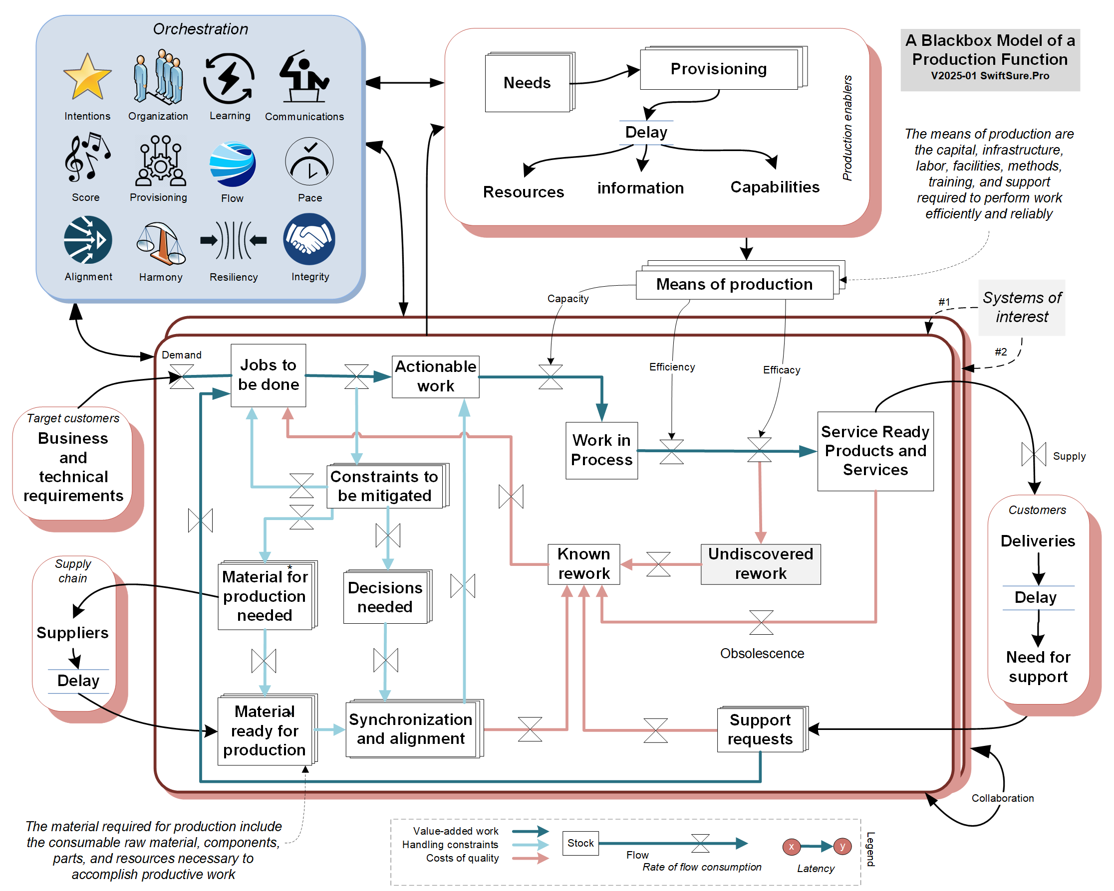 By modeling production as a black box, we gain a powerful vantage point for diagnosing inefficiencies, identify opportunities to learn to enhance throughput, and align capacity with demand. This black-box abstraction doesn’t ignore complexity, it channels it. Whether we’re scaling infrastructure, mitigating rework, or navigating provisioning delays, this viewpoint helps us see the system as a whole and think through strategies to act with precision. In a world where costs are not merely calculated but must be reduced, this orientation offers both strategic clarity and operational leverage. The next step in understanding how to optimize such situations is to dive into a post about how production breaks down.