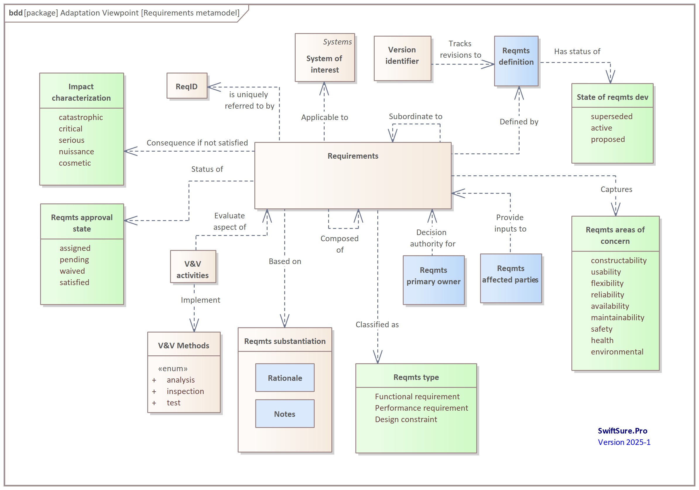 At higher levels, the requirements and functional structure is a mechanism that scopes and chunks the solution space, but may not be sufficiently detailed for implementation, or provide a basis for verification by an independent party. To move beyond the use of just a set of classifiers, we must define essential quality attributes necessary to satisfy the customer's mission, and describe the operational context of the system, so that different configurations of solutions can be considered.