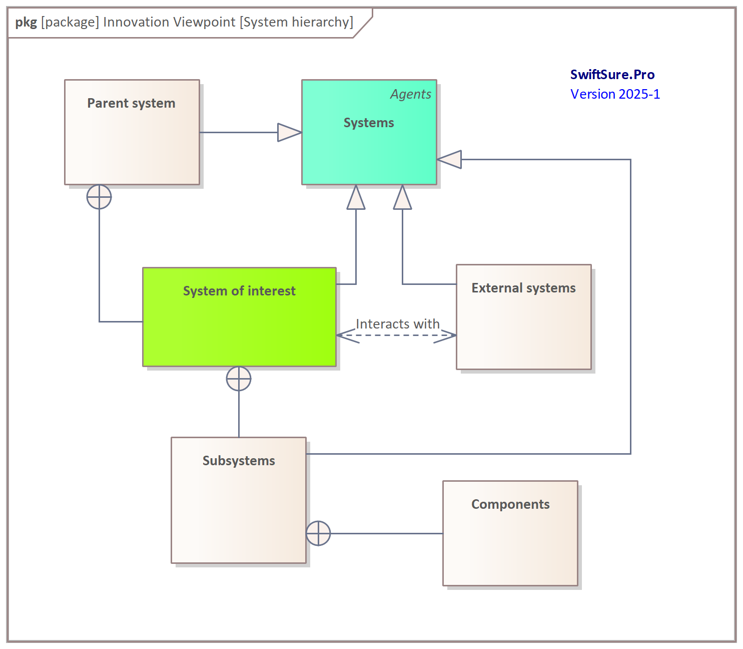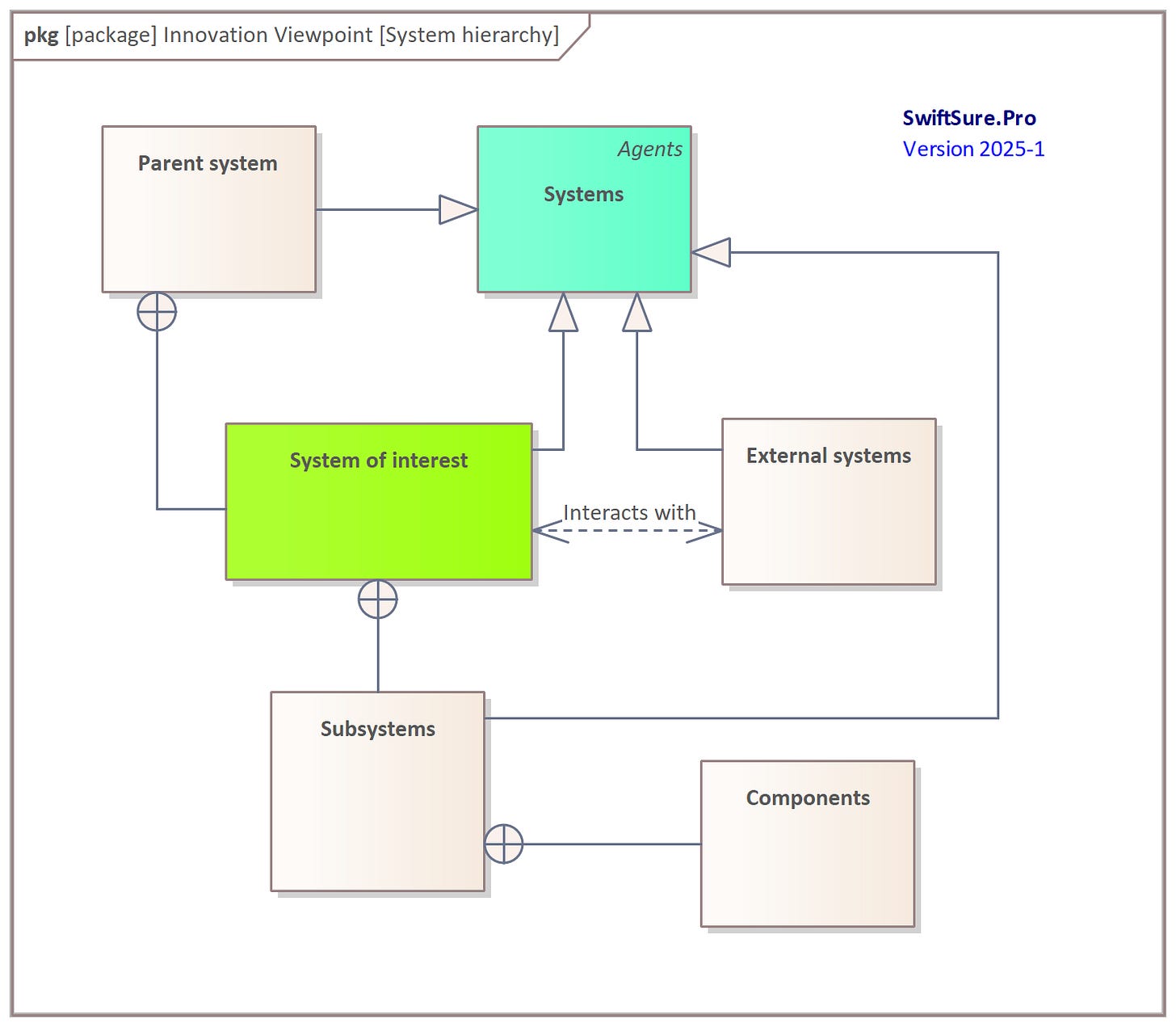 A strategic viewpoint, with the system as context, which defines the rules, constraints, and goals for how the system of interest, subsystems, and agents interact
