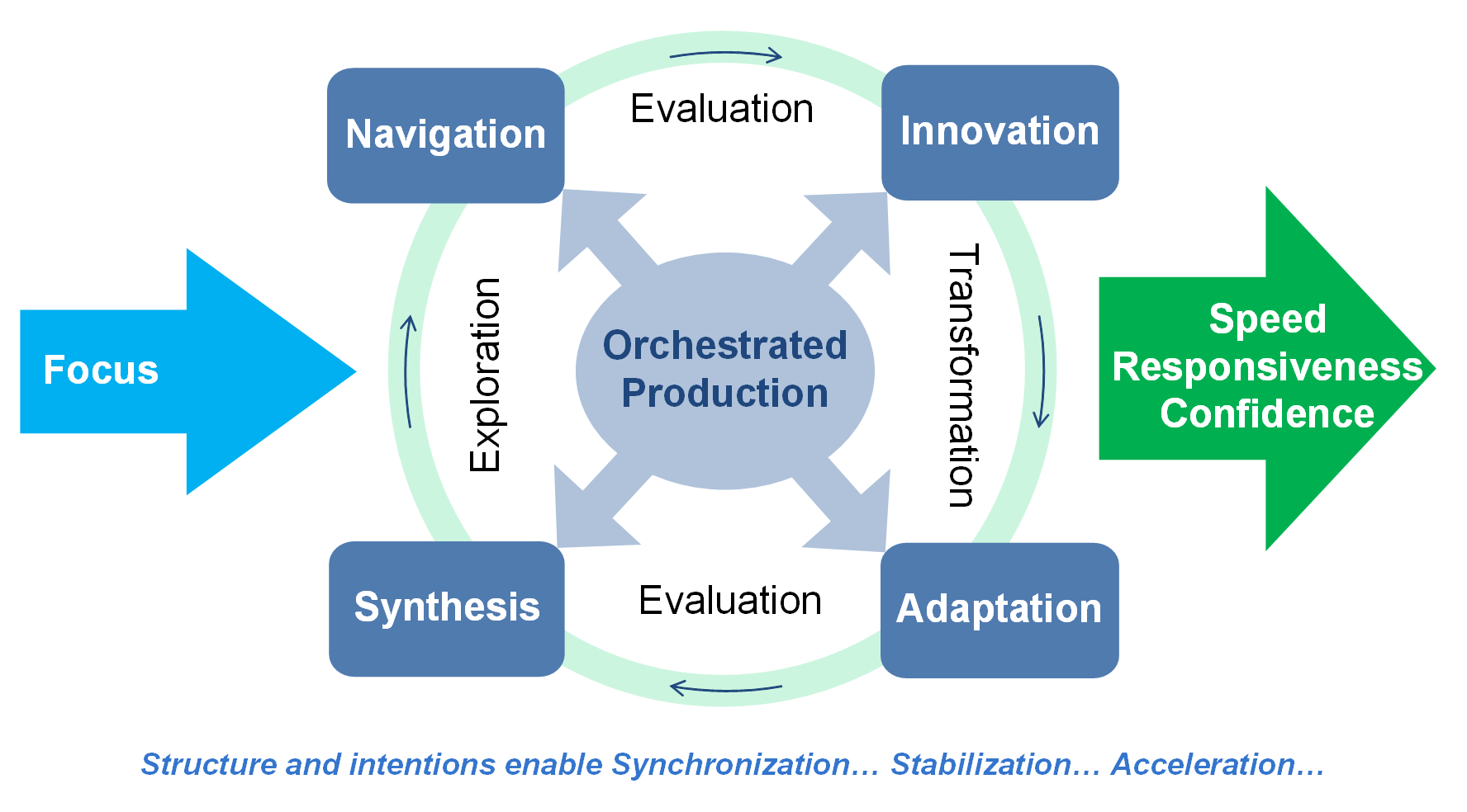 Changes to a system of interest typically unfold in an iterative fashion under multiple forces exerted through the fields of the PIANOS model, summarized in Figure 5. Value can be created when changes to such systems through orchestrated production will address the needs of its stakeholders better than existing alternatives.